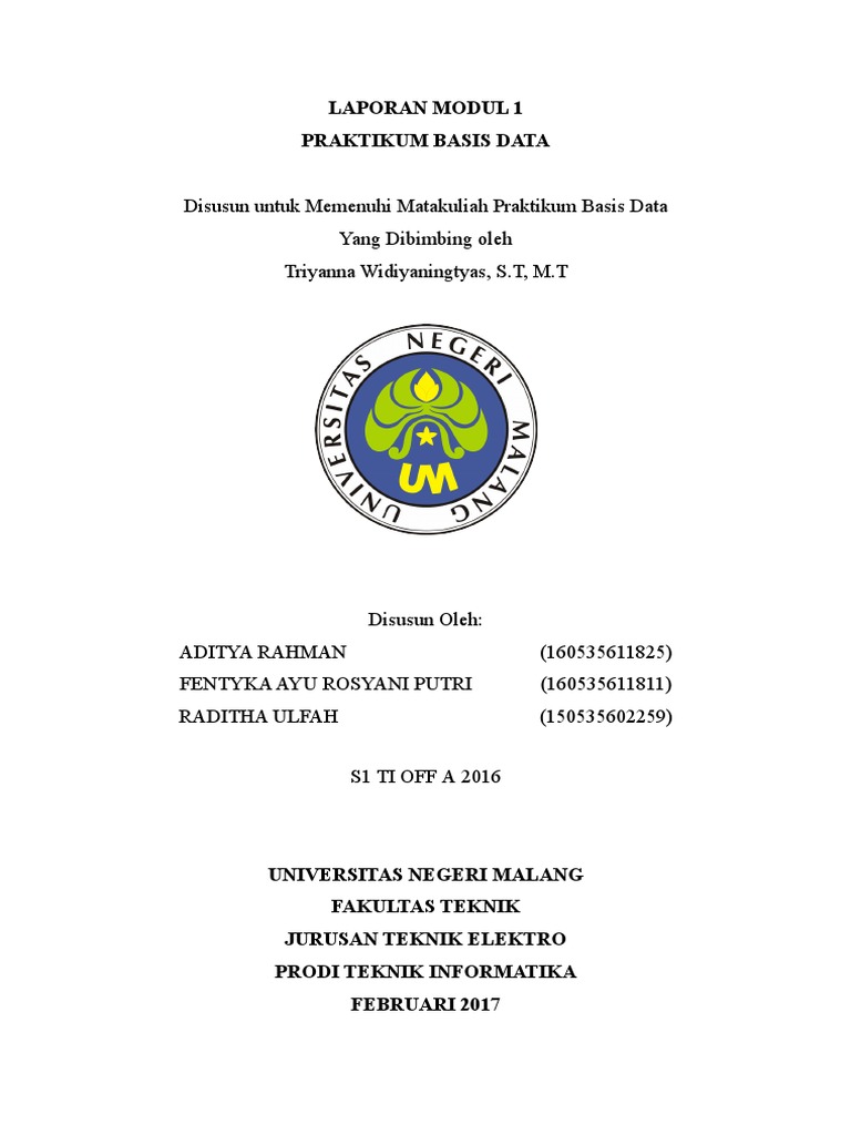 Disusun untuk Memenuhi Matakuliah Praktikum Basis Data
