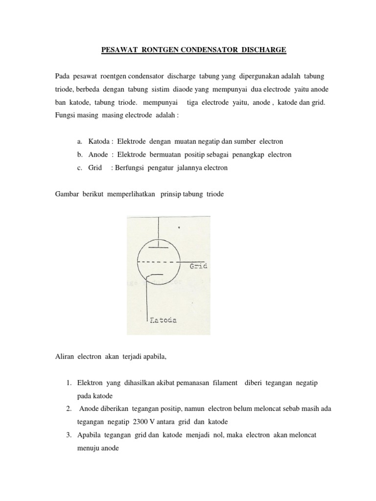 Pada pesawat roentgen condensator discharge tabung yang dipergunakan adalah tabung