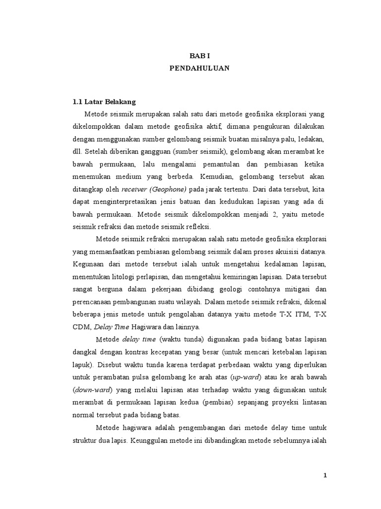 ini metode yang dibahas hanya sebatas metode seismik refraksi. Dalam metode