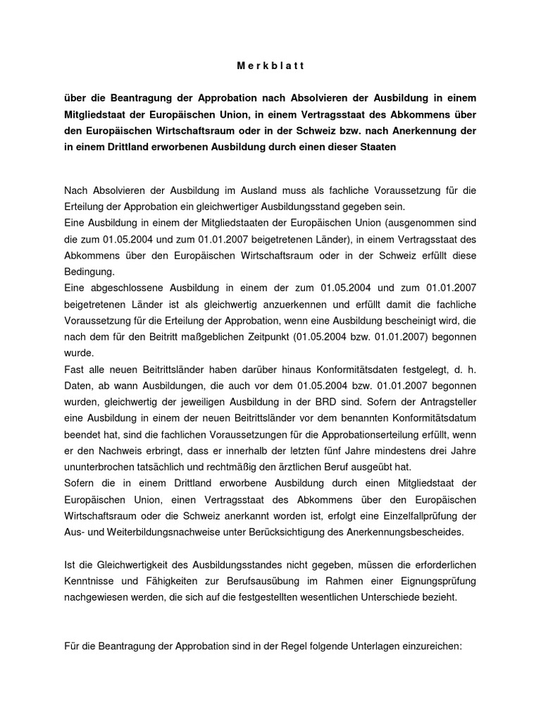 über die Beantragung der Approbation nach Absolvieren der Ausbildung in einem