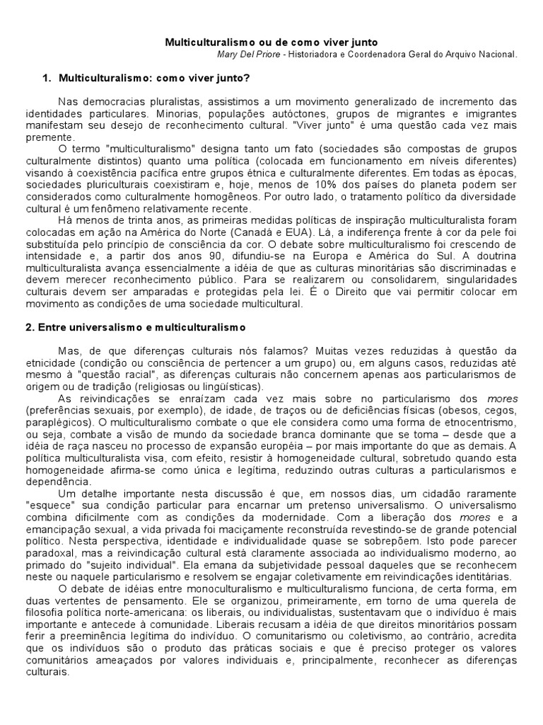1. Multiculturalismo: como viver junto?