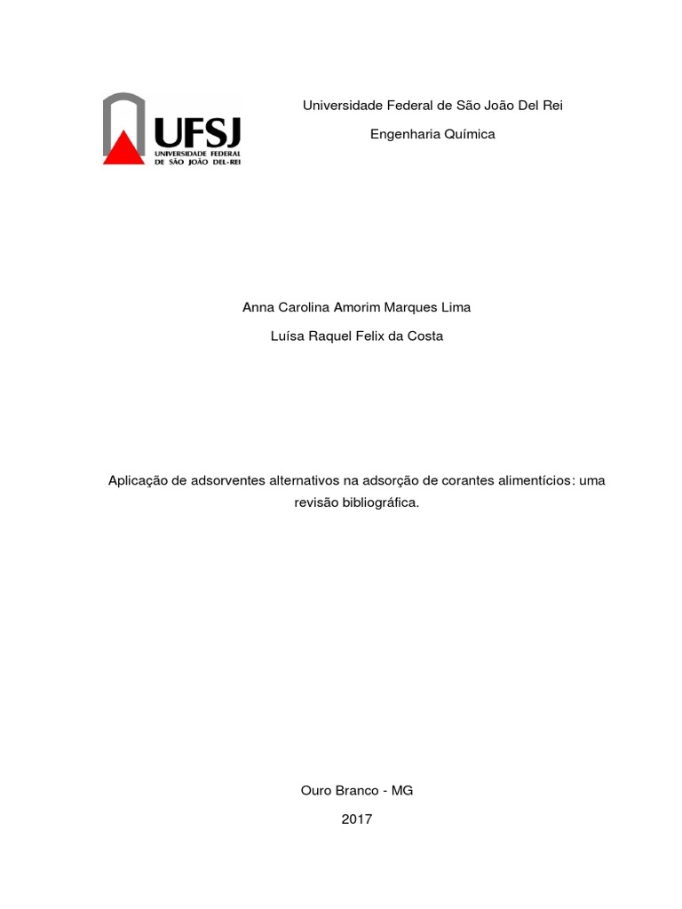 j testados na adsoro de corantes alimentcios. No presente trabalho, a adsoro