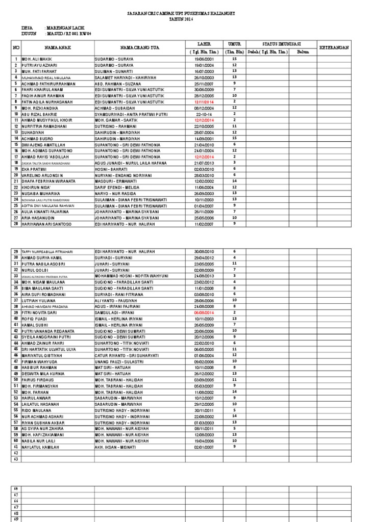 SASARAN ORI CAMPAK UPT PUSKESMAS KALIANGET