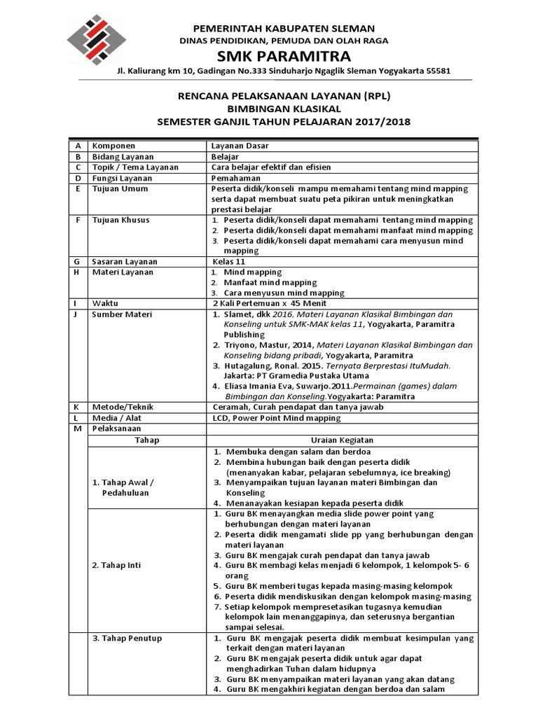 RENCANA PELAKSANAAN LAYANAN (RPL)