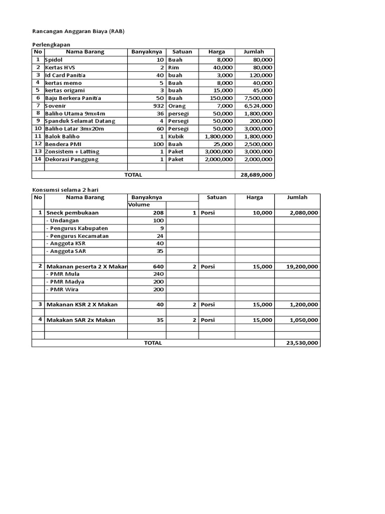 Rancangan Anggaran Biaya (RAB)