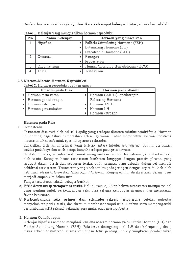 Tabel 1. Kelenjar yang menghasilkan hormon reproduksi
