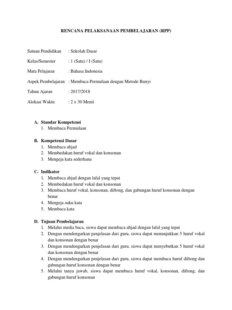 5. Melalui tanya jawab, siswa dapat membaca huruf vokal, konsonan, diftong, dan