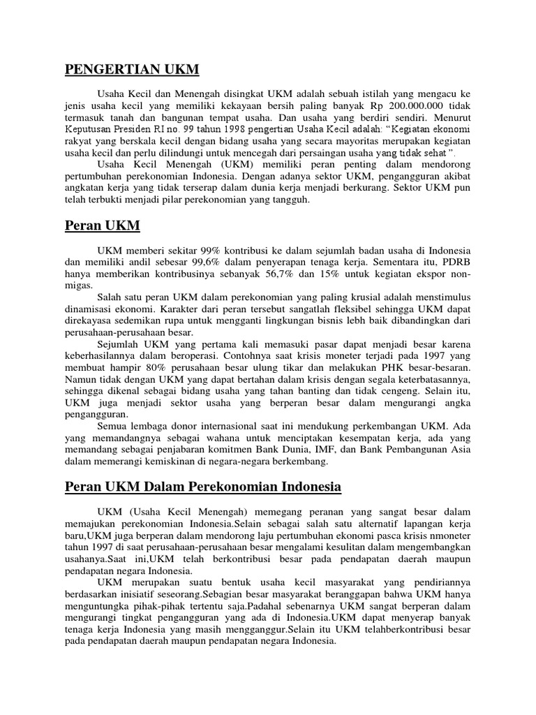 UKM merupakan suatu bentuk usaha kecil masyarakat yang pendiriannya