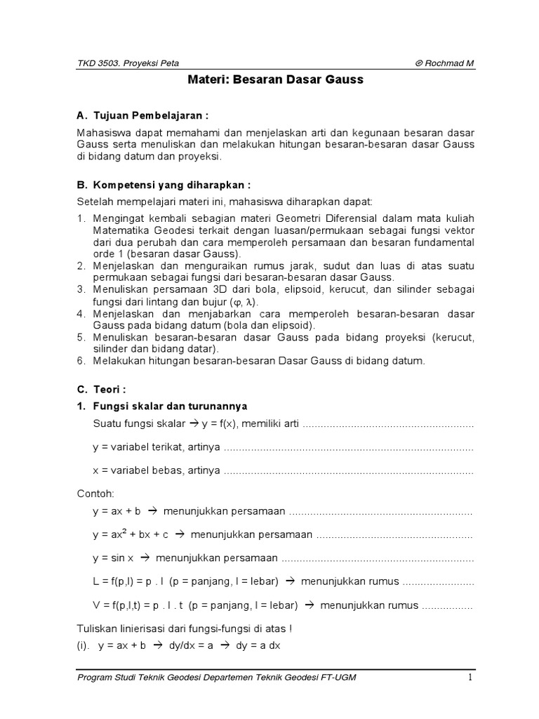 5. Menuliskan besaran-besaran dasar Gauss pada bidang proyeksi (kerucut,