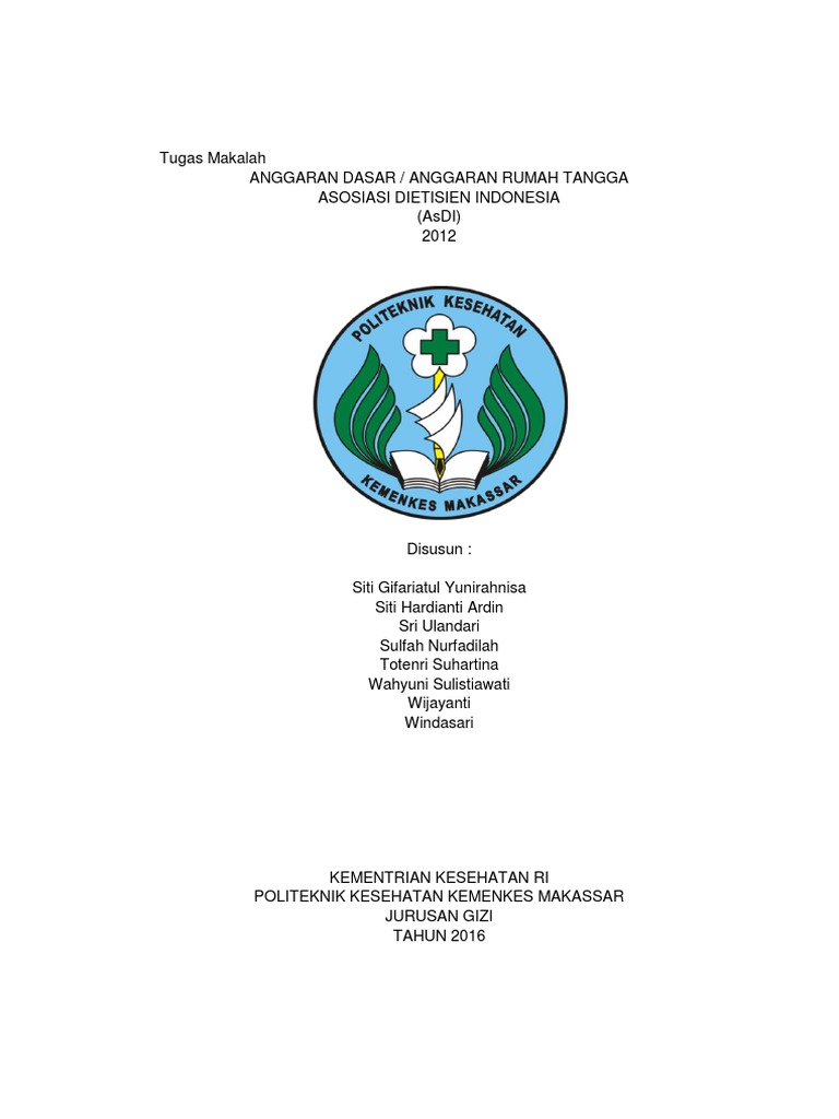 Dietisien Indonesia dengan Anggaran Dasar dan Anggaran Rumah Tangga