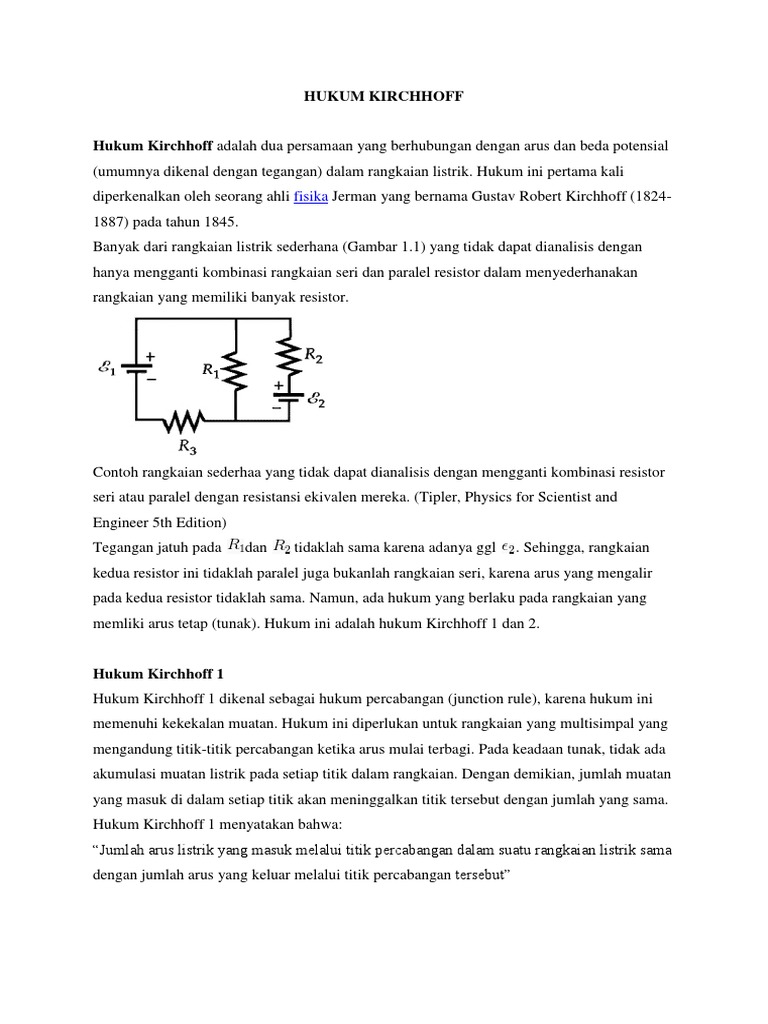 Seorang fisikawan bernama Gustav Robert Kirchhoff mencoba mengatasi suatu rangkaian