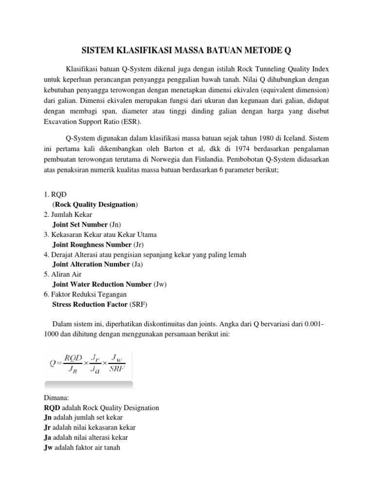 Klasifikasi batuan Q-System dikenal juga dengan istilah Rock Tunneling Quality Index
