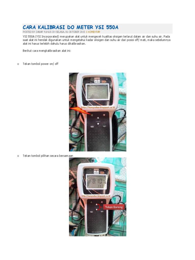 YSI 550A (YSI Incorporated) merupakan alat untuk mengecek kualitas oksigen terlarut dalam air dan suhu air. Pada