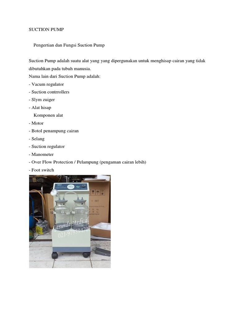 Suction Pump adalah suatu alat yang yang dipergunakan untuk menghisap cairan yang tidak