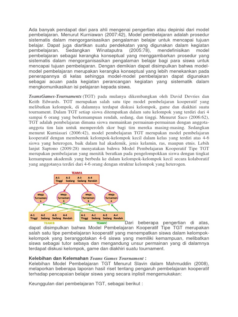 Model pembelajaran TGT adalah salah satu tipe atau model pembelajaran kooperatif