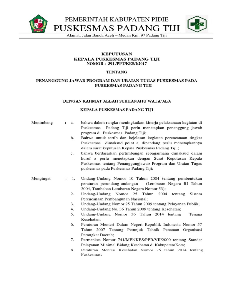 dalam surat keputusan Kepala Puskesmas Padang Tiji.;
