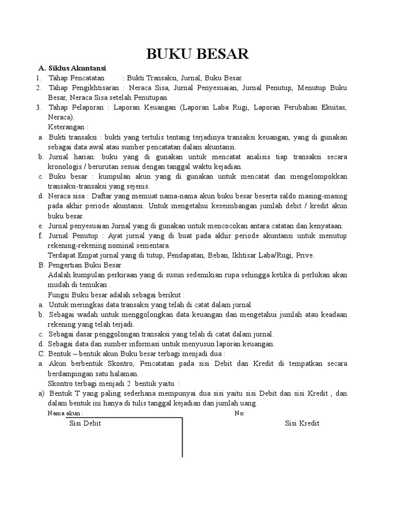 c. Buku besar : kumpulan akun yang di gunakan untuk mencatat dan mengelompokkan
