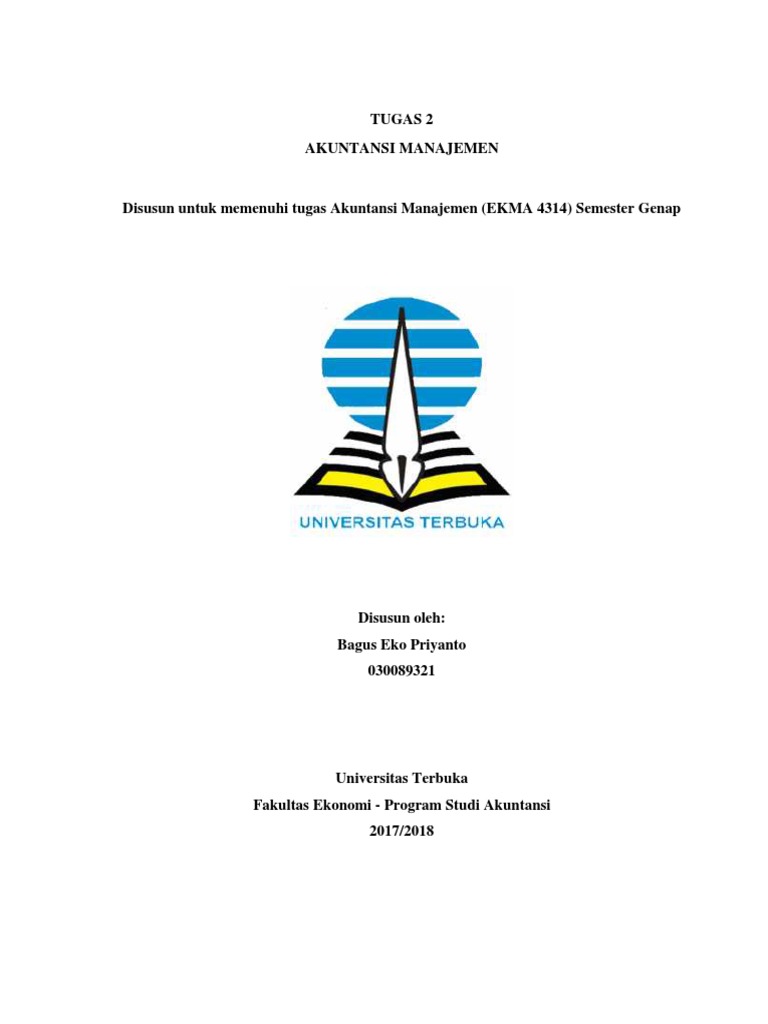 EKMA 4314 / AKUNTANSI MANAJEMEN TUGAS 2