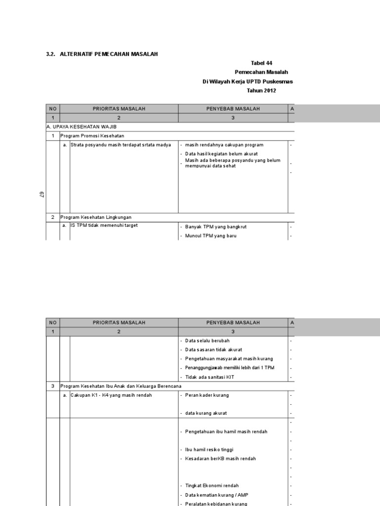 NO PRIORITAS MASALAH PENYEBAB MASALAH ALTERNATIF PEMECAHAN MASALAH