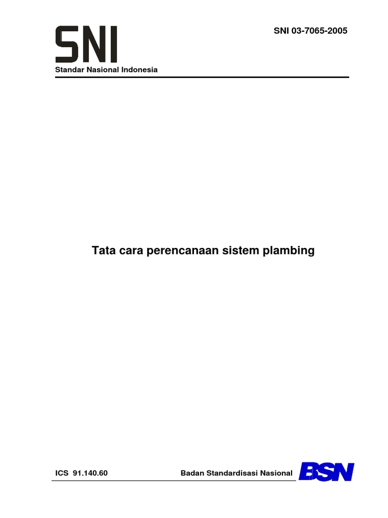 Standar Nasional Indonesia Tata cara perencanaan sistem plambing ini dimaksudkan
