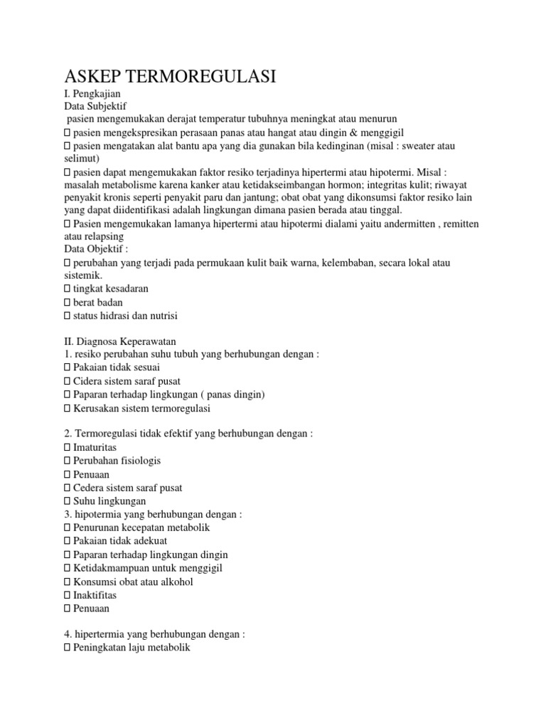 1. resiko perubahan suhu tubuh yang berhubungan dengan :