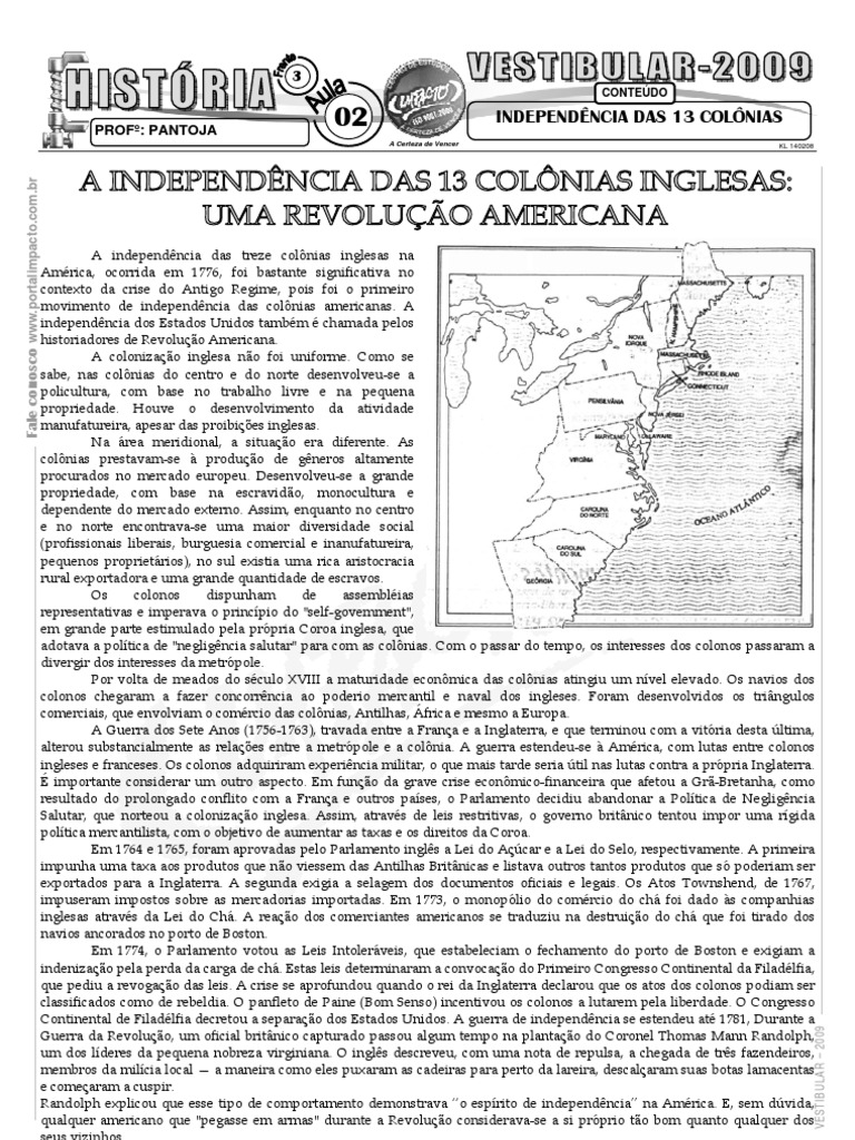 02 INDEPENDÊNCIA DAS 13 COLÔNIAS