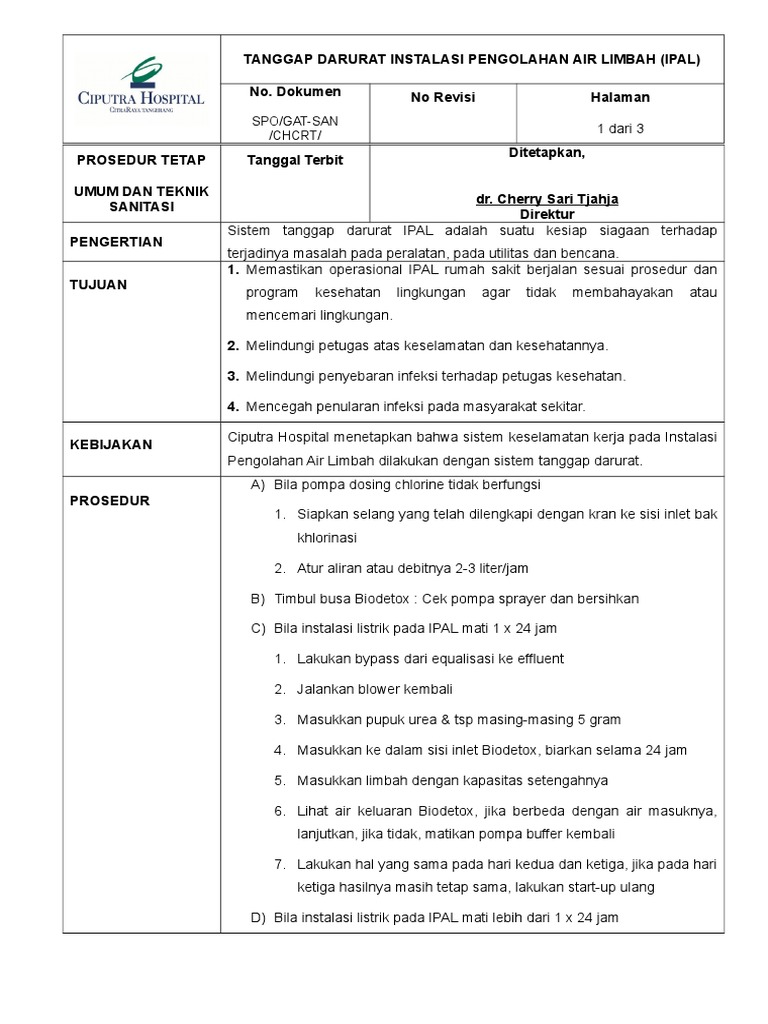 1. Memastikan operasional IPAL rumah sakit berjalan sesuai prosedur dan