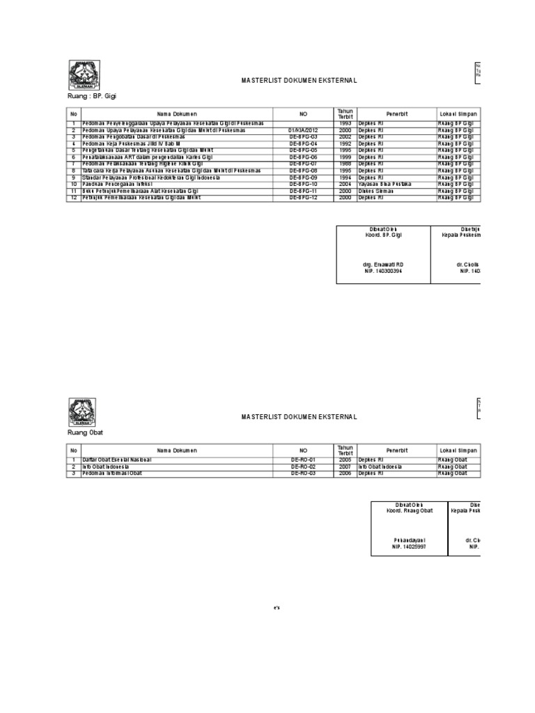 2 Pedoman Upaya Pelayanan Kesehatan Gigi dan Mulut di Puskesmas 01/KIA/2012 2000 Depkes RI Ruang BP Gigi