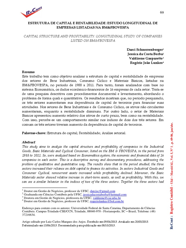 Este trabalho tem como objetivo analisar a estrutura de capital e rentabilidade de empresas