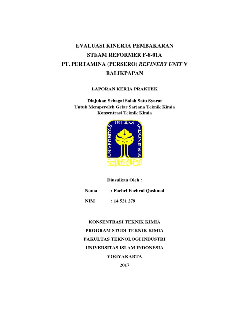 EVALUASI KINERJA PEMBAKARAN STEAM REFORMER F-8-01A