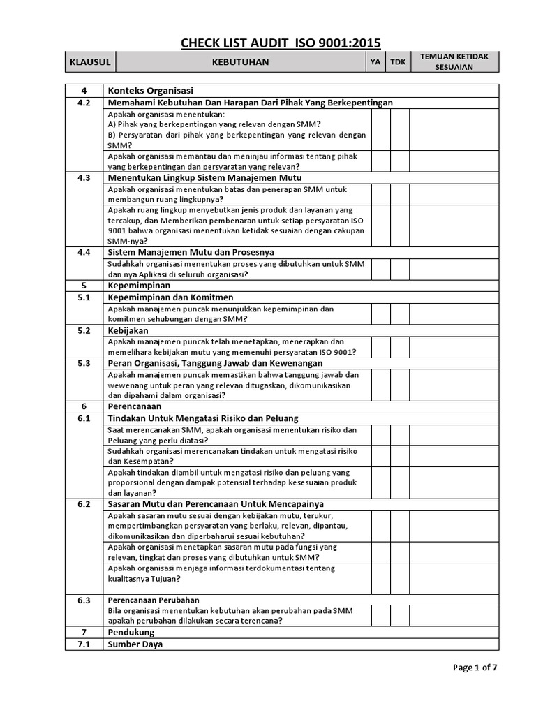 tercakup, dan Memberikan pembenaran untuk setiap persyaratan ISO