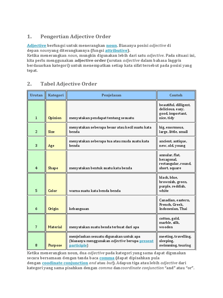 dengan coodinate conjunction and atau but). Adapun tiga atau lebih adjective dari