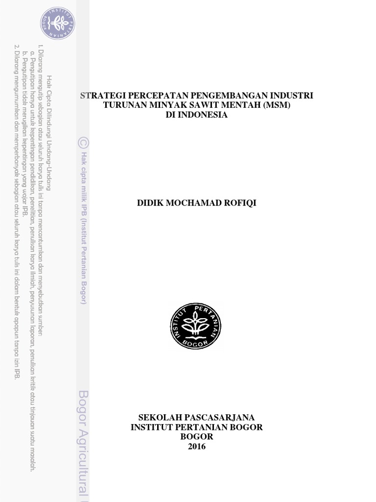 Minyak Sawit Mentah (MSM) Di Indonesia. Dibimbing oleh M SYAMSUL