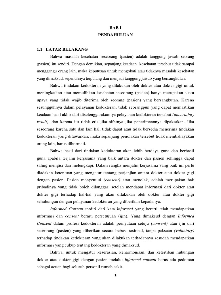 dokter atau dokter gigi dengan pasien melalui informed consent harus ada pedoman