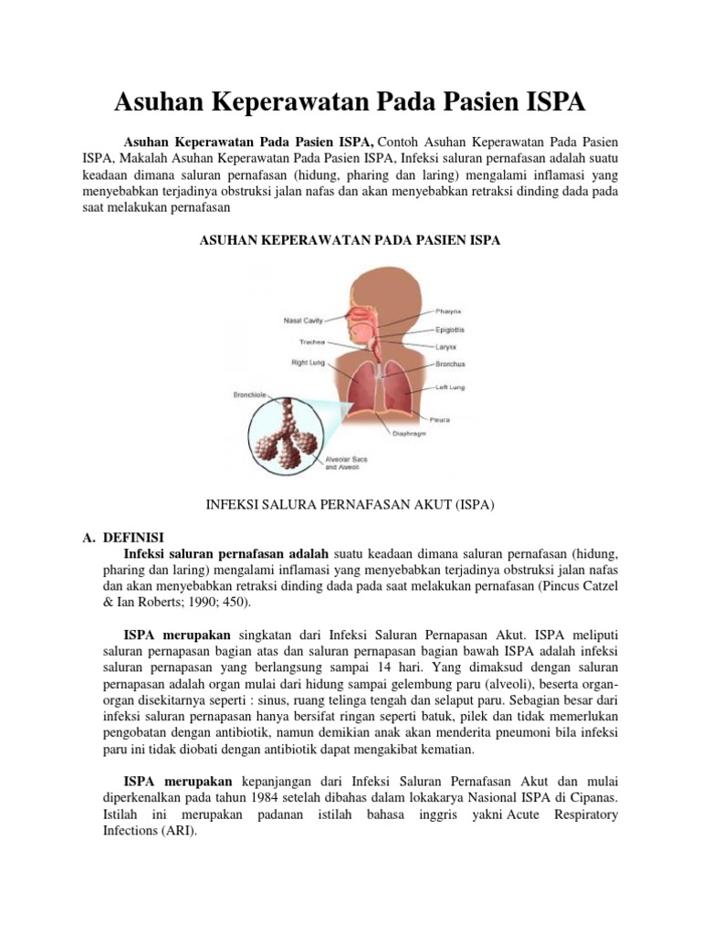 ISPA, Makalah Asuhan Keperawatan Pada Pasien ISPA, Infeksi saluran pernafasan adalah suatu