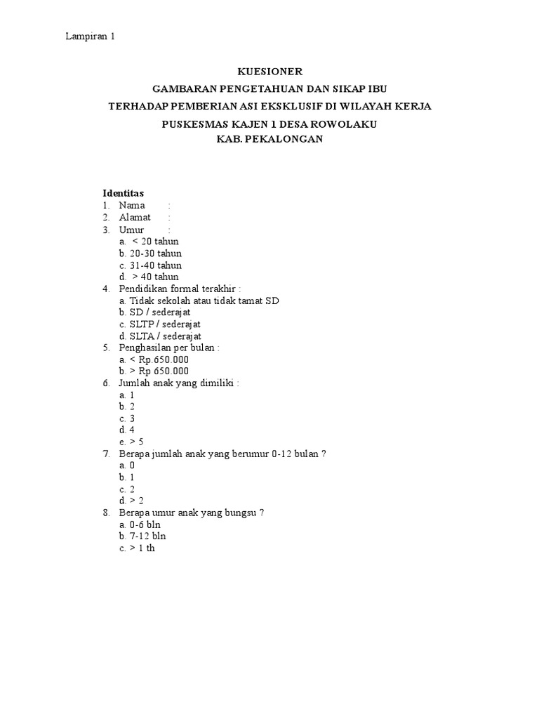 1. Apakah Ibu tahu apa yang dimaksud dengan ASI eksklusif ?