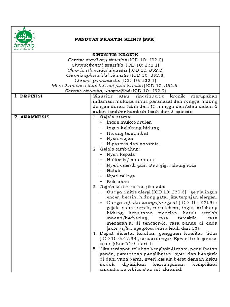 6. DIAGNOSIS KERJA Chronic maxillary sinusitis (ICD 10: J32.0)