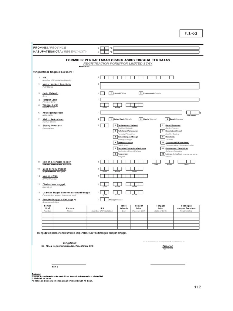 FORMULIR PENDAFTARAN ORANG ASING TINGGAL TERBATAS
