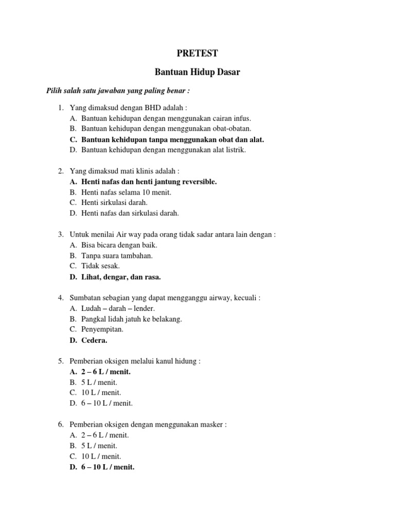 17. Gangguan breathing diatasi dengan memberikan bantuan pernafasan :