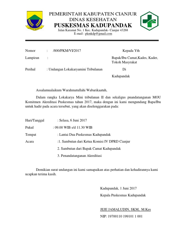 Komitmen Akreditasi Puskesmas tahun 2017, maka dengan ini kami mengundang Bapa/Ibu