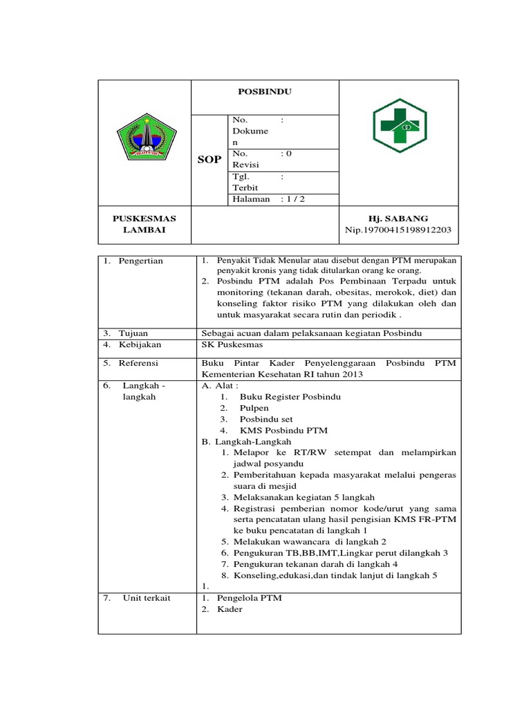2. Tujuan Sebagai acuan dalam pelaksanaan kegiatan Posbindu