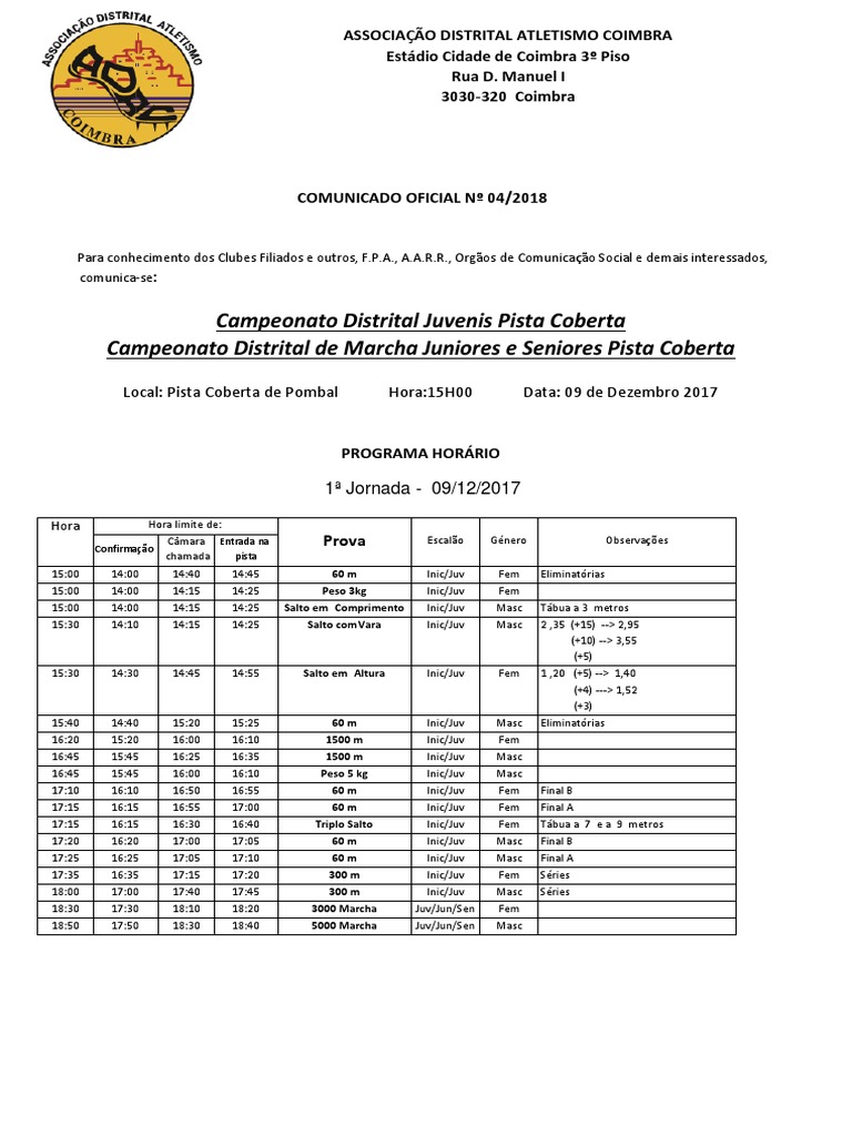 ASSOCIAO DISTRITAL ATLETISMO COIMBRA
