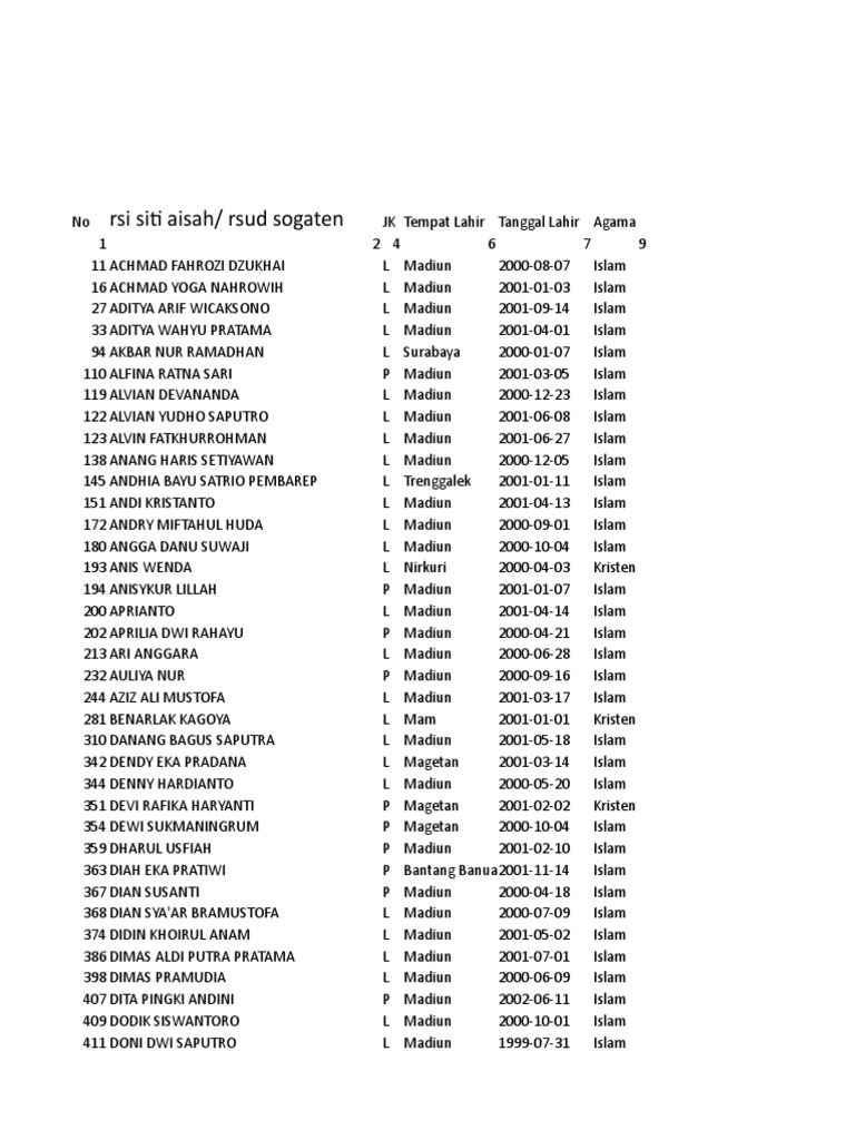 200 APRIANTO L Madiun 2001-04-14 Islam