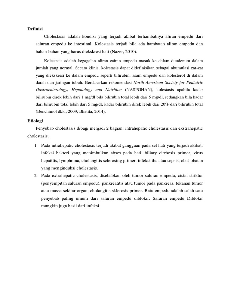 jumlah yang normal. Secara klinis, kolestasis dapat didefinisikan sebagai akumulasi zat-zat