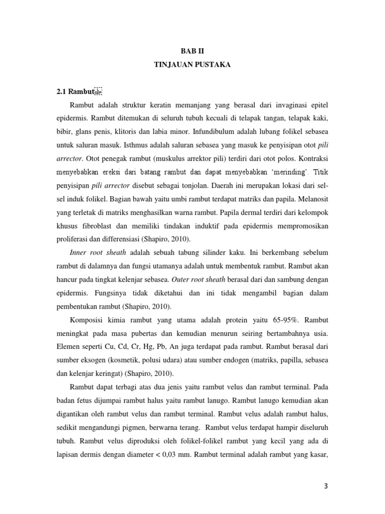 di bawah folikel rambut sebelum mengalami perubahan (Suling, 2012).