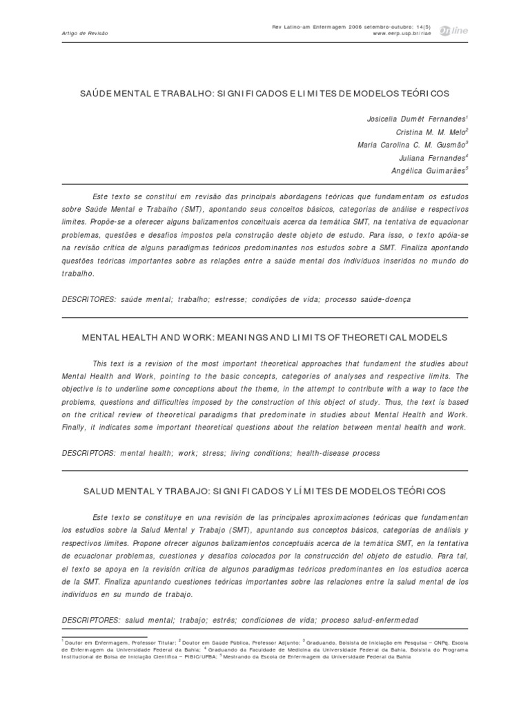 Sade mental e trabalho: significados... Rev Latino-am Enfermagem 2006 setembro-outubro; 14(5)