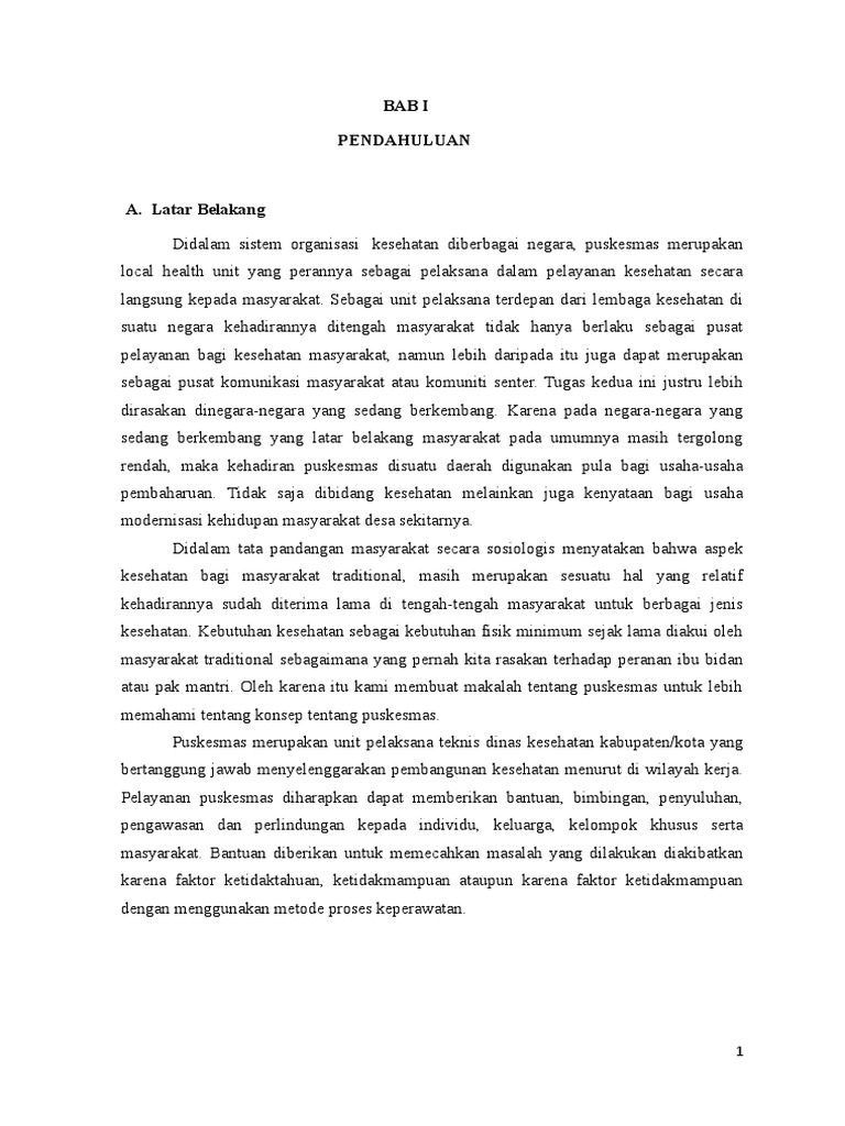 a. Puskesmas adalah unit organisasi pelayanan kesehatan terdepan yang