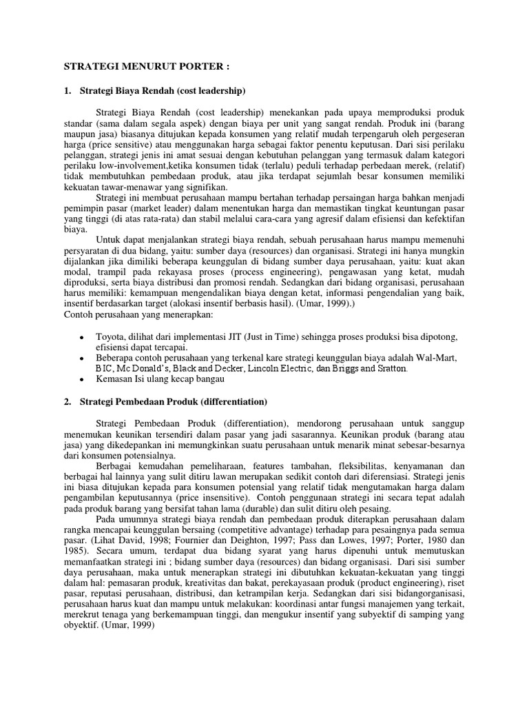 Pada umumnya strategi biaya rendah dan pembedaan produk diterapkan perusahaan dalam