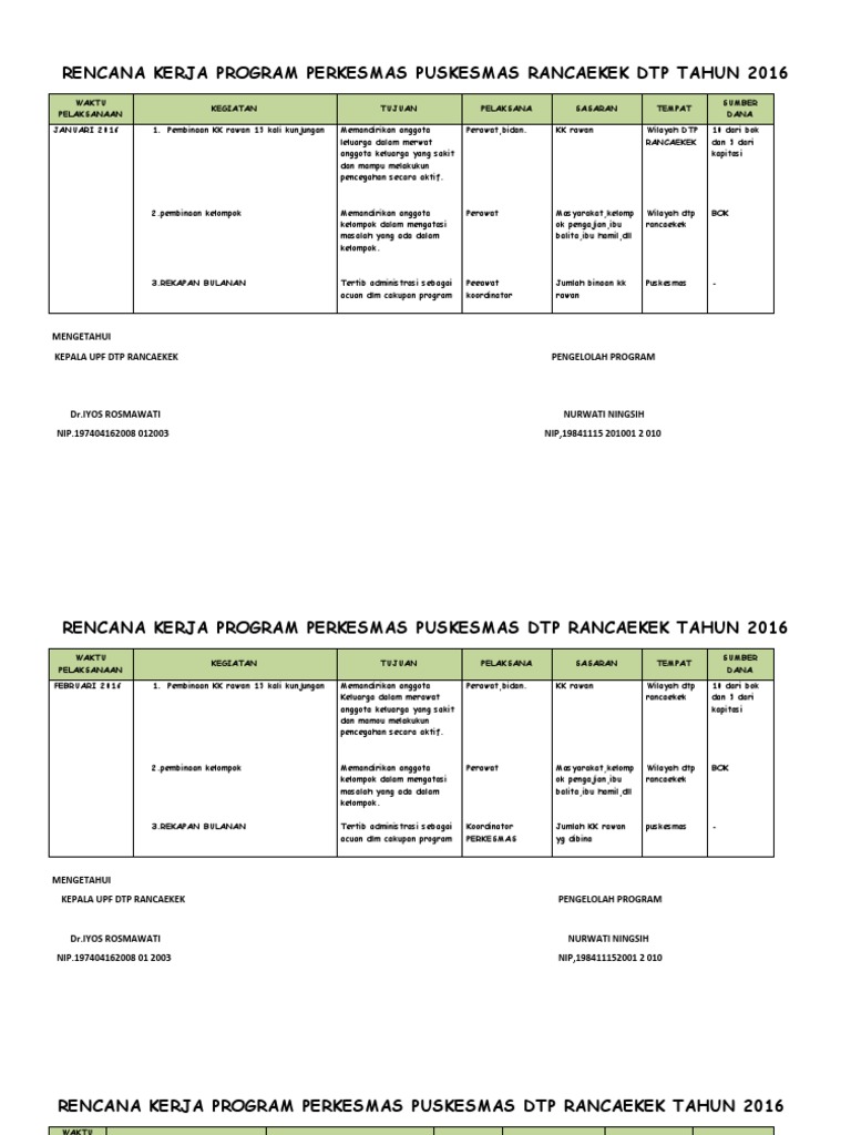 RENCANA KERJA PROGRAM PERKESMAS PUSKESMAS RANCAEKEK DTP TAHUN 2016