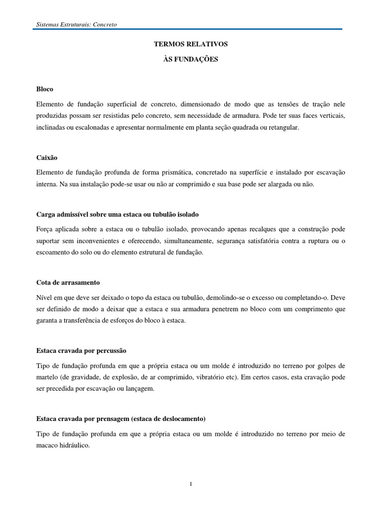 Presses bsicas para orientao inicial do estudo das fundaes, considerando pilares com cargas no